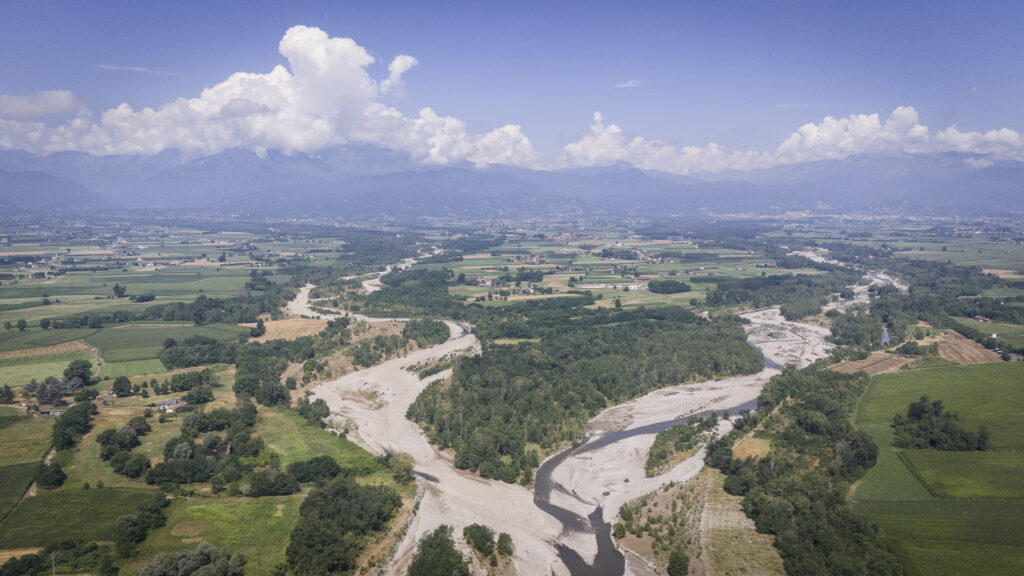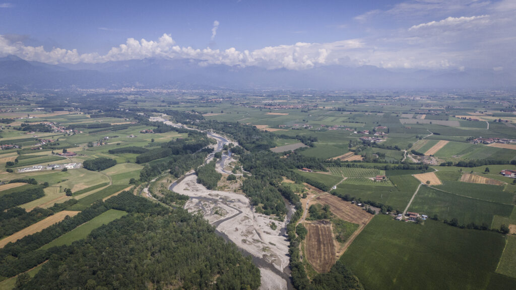 Tornati a Faule si prosegue su SP 663 che con un lungo rettilineo tra campi coltivati, dopo aver superato il nucleo di Cascina Motta, raggiunge Moretta. Qui si entra nella SP 1 e, dopo aver varcato il Po su un ponte in cemento, si raggiunge la vicina Villafranca Piemonte dalla quale, dopo aver attraversato il centro storico, si esce con la SP 151, diretta verso Cavour. Lasciata a destra la frazione S. Giovanni e raggiunta quella di S. Luca, proprio presso quest’ultima si imbocca la SP 153 che porta, per suggestivi percorsi campestri, alla Cascina Genero dalla quale, per via Vigone, si raggiunge il guado sul Pellice di Zucchea, poche decine di metri a monte del quale si trova la confluenza Pellice-Chisone. Di qui, continuando sulla tortuosa via Cavour, in pochi km si raggiunge la rotonda posta all’ingresso di Vigone, dalla quale, ripetendo al contrario la strada di andata, si fa ritorno a Pinerolo (60,6 km – ore 3.30 – MC)
