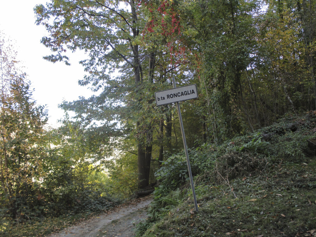 Passiamo alla borgata Roncaglia (foto 8), quindi arriviamo alla borgata Castellazzo, (foto 9) che si trova all’inizio di un breve pianoro (foto 10), al termine del quale troviamo sulla destra una edificio in ristrutturazione che ci dice essere stato una scuola elementare (foto 11), quando negli anni passati la montagna era ancora maggiormente popolata; sulla sinistra, poi, troviamo la borgata Garossini (foto 12 e 13), ove è presente un pannello che descrive brevemente la storia della località.