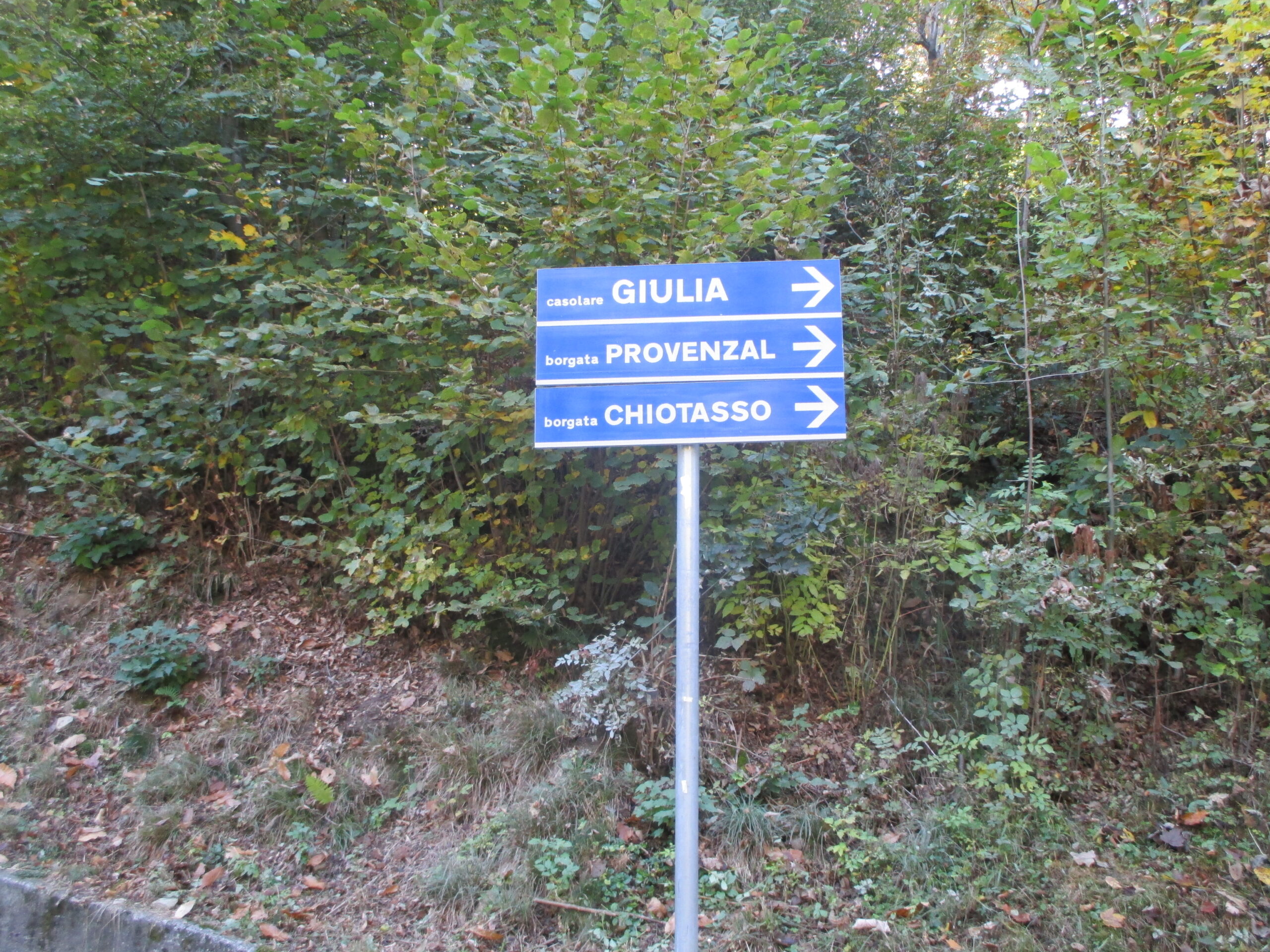 In tal modo raggiungiamo quasi subito la frazione Fossat (foto 4), in cui troviamo un bivio (foto 5) in cui continuiamo in direzione del ristorante, giungendo poco dopo alla borgata Turina (foto 6). Dopo appena pochi metri ci troviamo ad un nuovo bivio (foto 7) dove, pur non essendoci nessun cartello direzionale, prendiamo la direzione a destra.