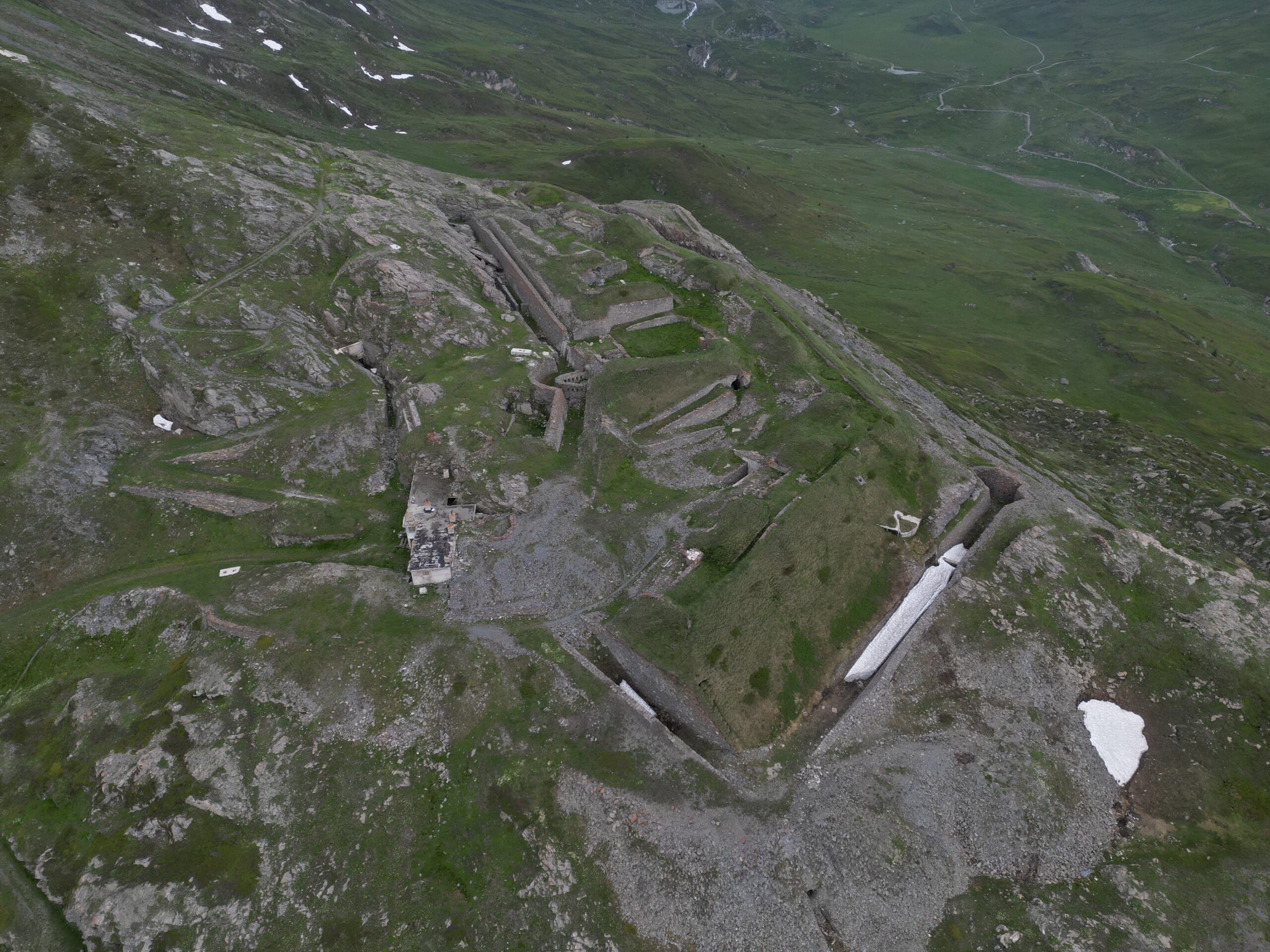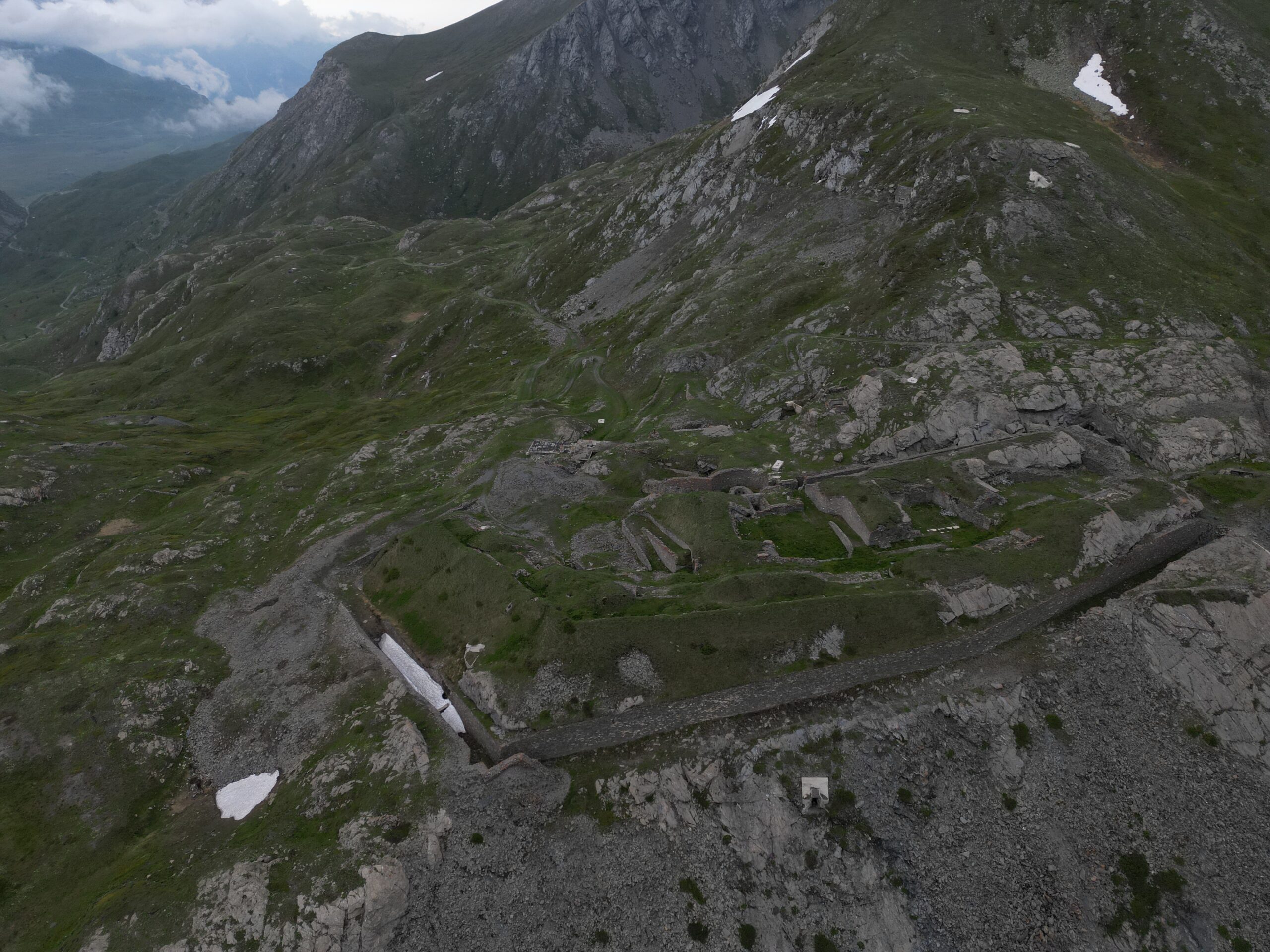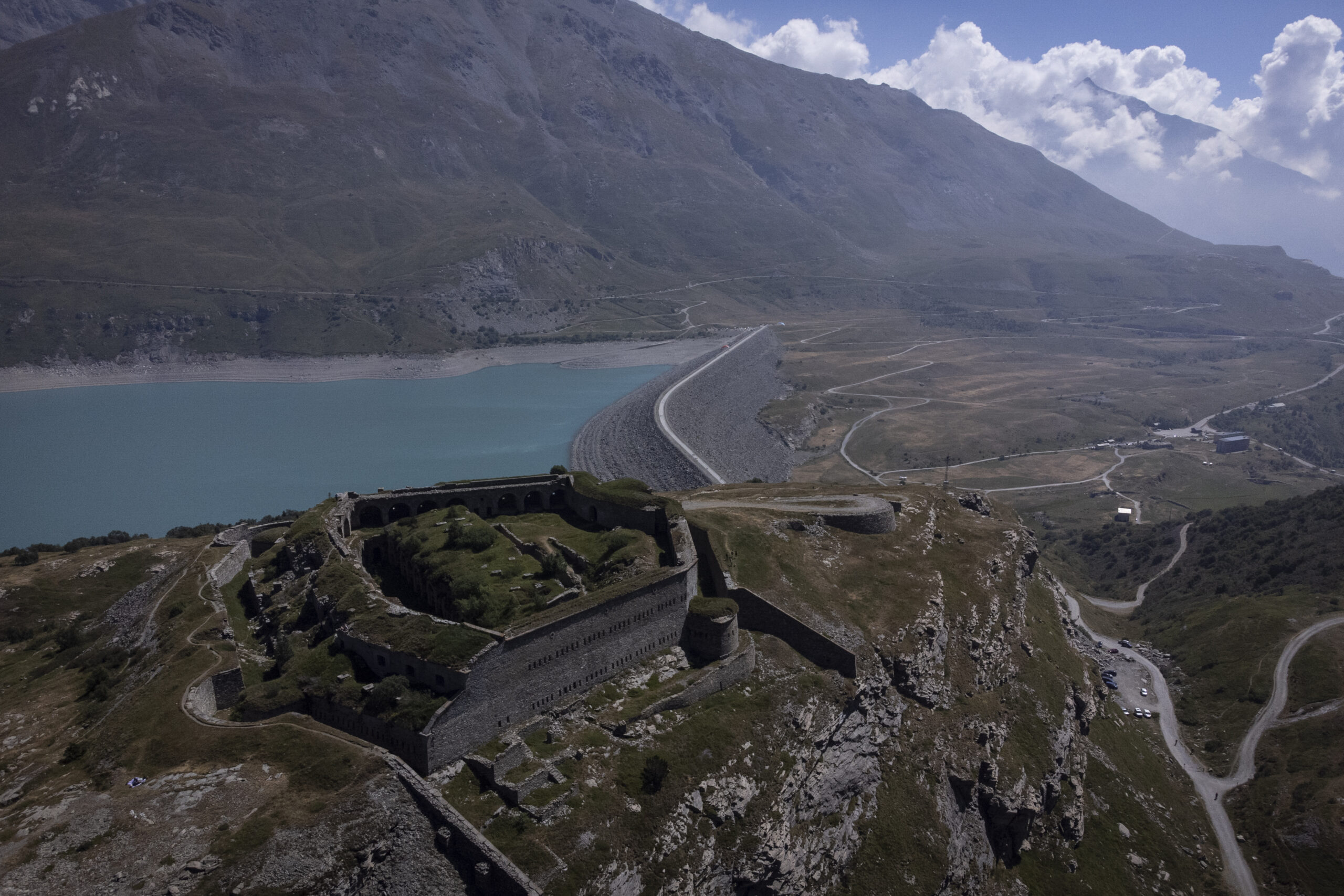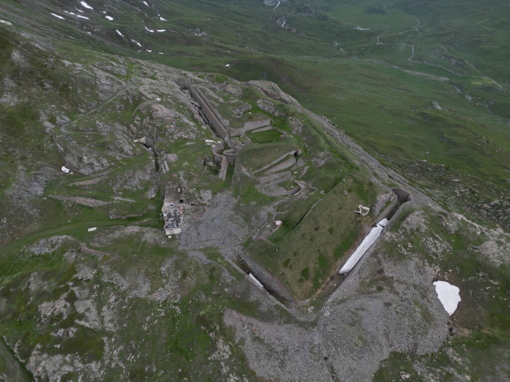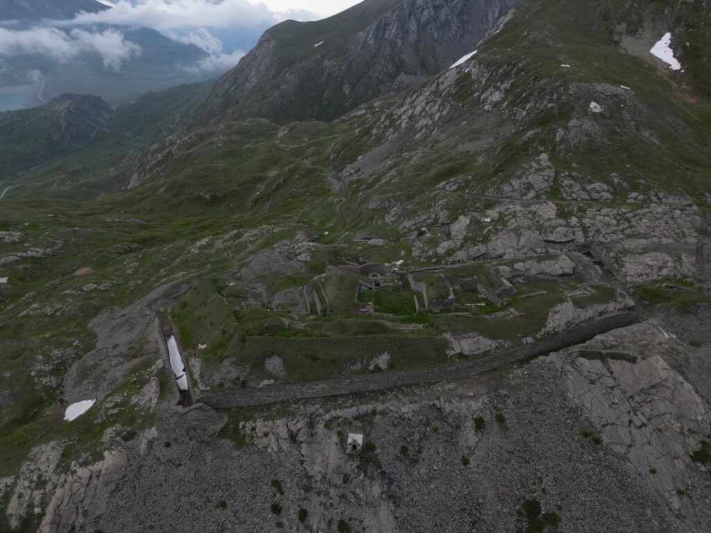 1) Forte Varisello: Edificato tra Il 1887 ed il 1880 il Forte Varisello domina da 2106 m. di quota l’attuale lago artificiale del Moncenisio. Esso costituiva, assieme all’ormai distrutto Forte Cassa ed al Forte Roncia, collocato in posizione simmetrica dall’altra parte dell’invaso, un serio sbarramento del passo. La struttura, a pianta poligonale e circondata da ampio fossato, era costituita di parecchie cannoniere e casematte disposte su diversi livelli. Al piano superiore erano posizionate le bocche da 9 A.R./Ret, mentre sui fianchi nord, est, ovest si affacciavano ben 27 cannoniere. In basso, invece, trovavano posto 4 cannoniere per obici e file di feritoie per i fucilieri. Disarmato nel 1900, dopo solo 20 anni di vita, per manifesta incapacità di resistere al fuoco delle moderne granate, il forte fu utilizzato come bersaglio per tiri di artiglieria e quindi come magazzino.